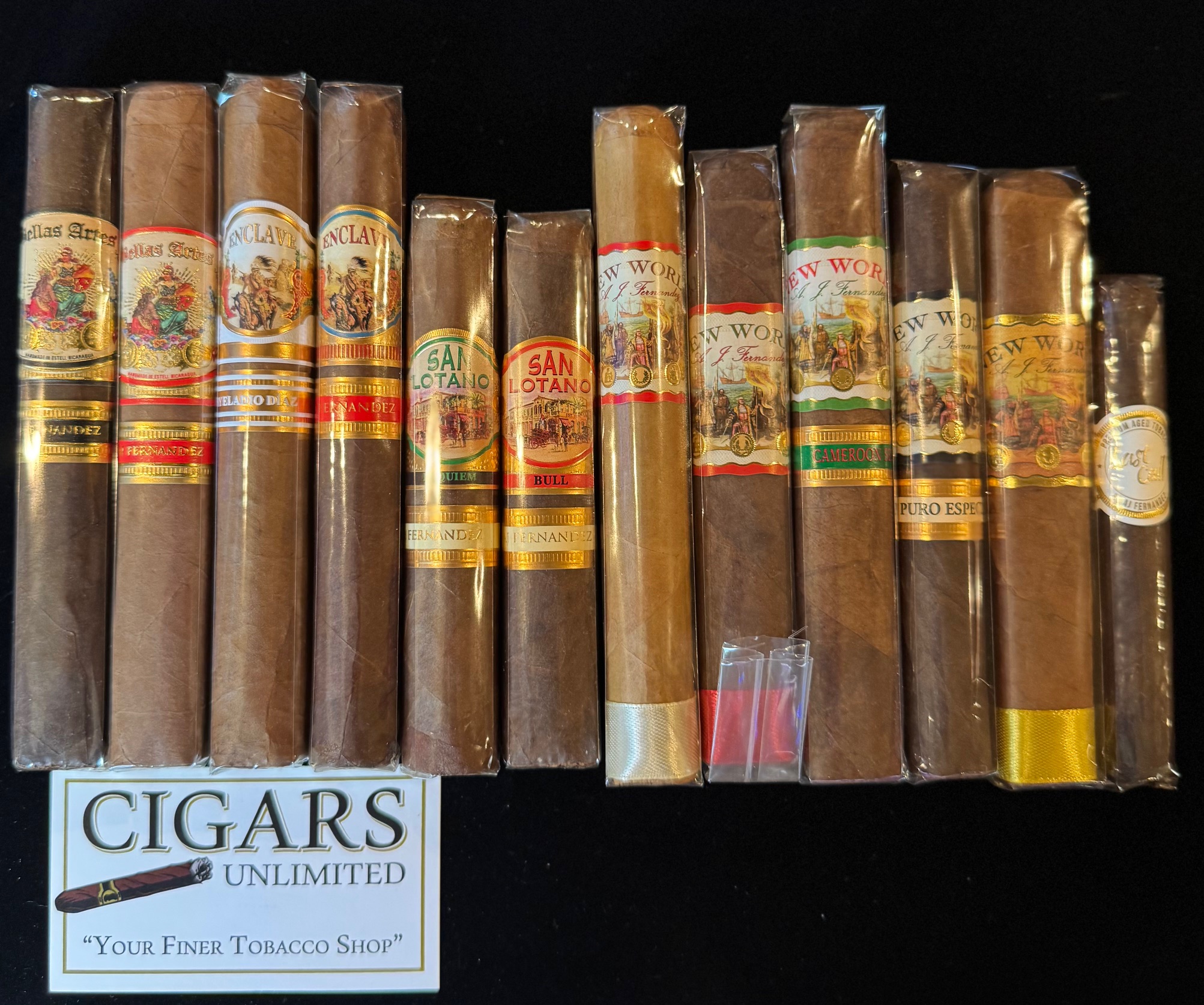 Raised in Cuba and steeped in the rich tradition of Fernandez cigar legacy, AJ Fernandez produces unparalleled premium cigars in Esteli, Nicaragua. This 12 count variety pack includes the following: