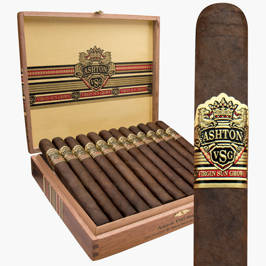 The prized Sumatra-seed wrapper on Ashton VSG hails from a private estate in Ecuador where the region’s delicate cloud cover naturally filters sunlight. From there, it is fermented extensively in the hands of the Fuente family until it achieves its dark and lustrous sheen. The wrapper conceals a profound marriage of four-to-five-year-aged Dominican binder and filler tobaccos. Since its debut in 1999, the 94-rated Ashton VSG has governed the summit for full-bodied flavor and richness. Mesmerizing notes of cedar, earth, espresso, black pepper, and leather develop with impeccable accord in several classic shapes.